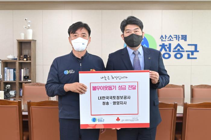 LX한국국토정보공사 청송영양지사는 11월 26일 동절기 이웃돕기 성금을 청송군에 전달했다.