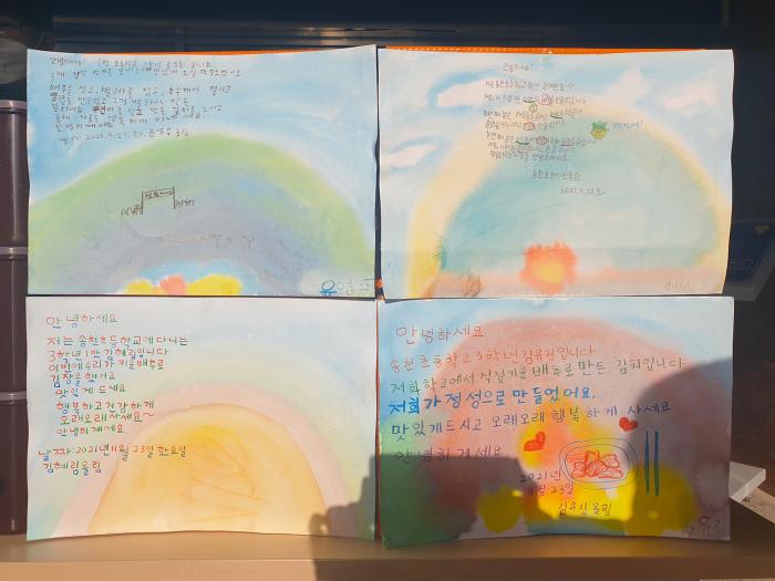 특히, 김장김치는 학교 텃밭에서 아이들이 직접 키운 배추와 무로 학생과 부모님들이 함께 버무려 만든 것으로 그 의미가 남다르다. 식품꾸러미 상자마다 빼곡히 붙어있는 그림편지에는 "배추를 심고 벌레를 잡으며 키워 소금물에 절이고 양념을 만들어 김장김치를 만들었다"며 "부족하지만 정성껏 만들었으니 맛있게 드시고 오래오래 건강하세요"라고 또박또박 써내려간 아이들의 예쁜 마음이 담겨 더 큰 감동을 선사했다.