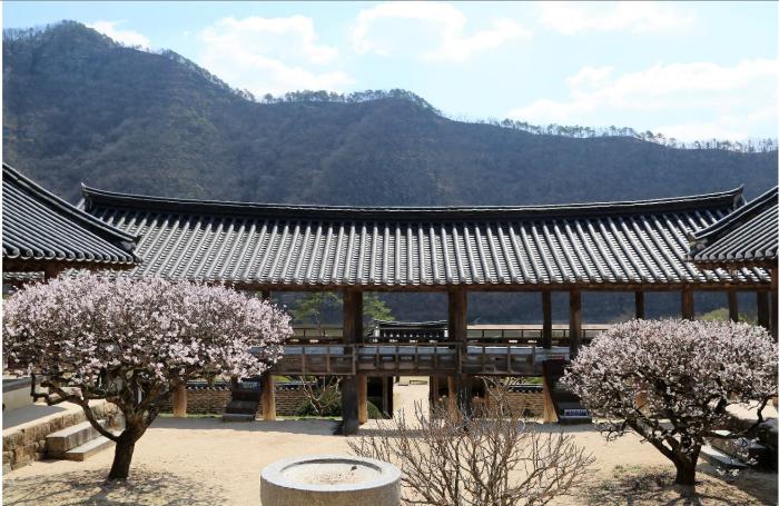보물 제2104안동 병산서원 만대루는 정면 7, 측면 2칸의 압도적인 규모의 팔작지붕으로 병산서원을 외부로부터 막아주는 방어막의 역할을 함과 동시에 병산서원의 맞은편에 있는 강과 절벽이 이루는 승경을 전통적인 조경수법인 차경(借景)’의 예로써 잘 살린 누각으로 병산서원 건축의 백미라고 할 수 있다.