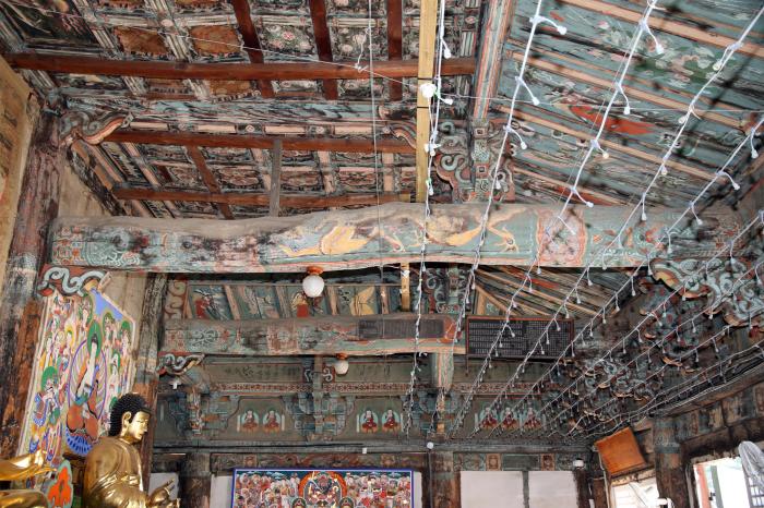 안동 봉황사 대웅전 17세기 후반 무렵 중건된 것으로, 내부 우물반자에 그려진 , 금박으로 정교하고 도드라지게 그려진 연화당초문 등이 17~18세기 단청의 전형을 보이고 전면의 빗반자에 그려진 봉황은 연꽃을 입에 물고 구름 사이를 노니는 모습으로, 봉황사라는 사찰의 유래와도 관련된 독특한 것으로 평가된다.
