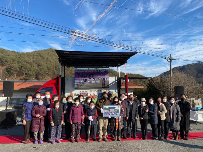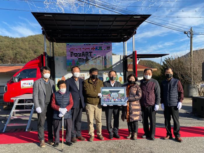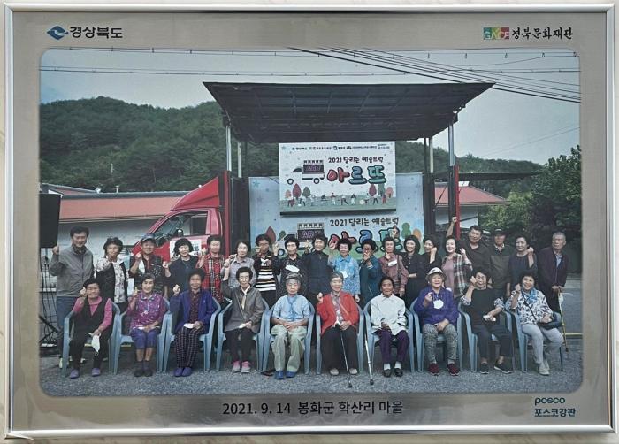 경상북도와 경북문화재단, 포스코강판은 29일 오후 봉화 춘양면 학산리 마을에서 ‘2021 달리는 예술트럭 아르뜨(ART) 1회차 행사 기념 포스아트(PosART) 전달식’을 가졌다.