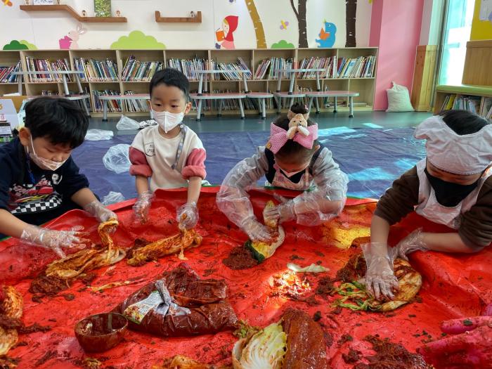 안동 꿈빛유치원(원장 우수경)은 11월 26일(금) 유아 132명(8학급)을 대상으로 도서실에서 각 반별로 '김장 담그기' 체험을 실시했다.