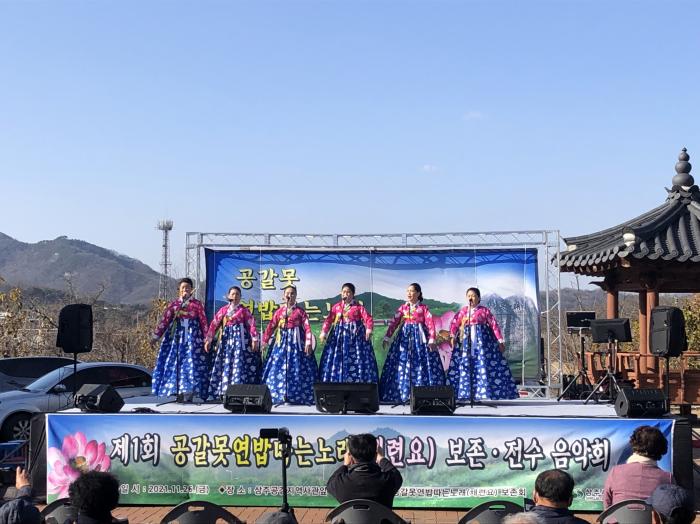 경북 상주시 공갈못 연밥 따는 노래 보존회가 지난 11월 26일(금) 공검지 역사관 광장에서 주민 90여 명이 참여한 가운데 '제1회 공갈못 연밥 따는 노래 보존ㆍ전수 음악회'를 개최했다.
