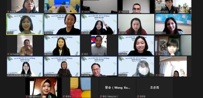 올해로 17회째를 맞이한 한국어연수 프로그램은 코로나19로 인해 온라인 연수로 대체해 중국, 터키, 러시아, 인도네시아, 캄보디아 5개국 14명의 연수생이 참가ㅙ 한국어능력시험(TOPIK) 자격증 취득을 목표로 온라인으로 어학교육과 함께 한국문화체험키트를 활용한 수업의 기회를 가졌다.