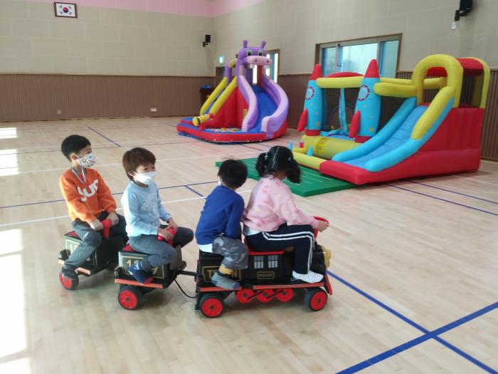 찾아오는 놀이동산은 여러 종류의 에어바운스, 미니 기차 놀이, 바이킹 놀이 등으로 이루어졌으며 일월초등학교 신나는 체육관에 마련되었다. 안전한 체험을 위해 사전에 유아들과 함께 안전 약속을 이야기 나눈 뒤 유치원 유아들과 1학년 학생들까지 함께 즐거운 놀이동산 체험 시간을 가졌다.