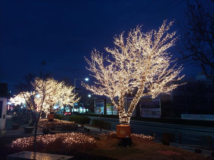 시청사 주변 인도를 따라 걸으며 시민들이 볼 수 있도록 주변 경관과 수목을 적절히 활용해 은하수 경관 조명을 설치했다.