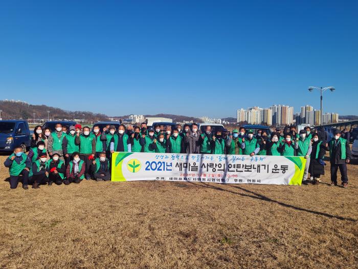 새마을지도자 안동시협의회(회장 안병환)에서는 12월 2일(목) 오전 10시 새마을회관 앞 낙동강 둔치에서 새마을지도자 100여 명이 참여한 가운데 따뜻한 겨울나기를 위한 ‘새마을 사랑의 연탄보내기 운동’을 추진했다.