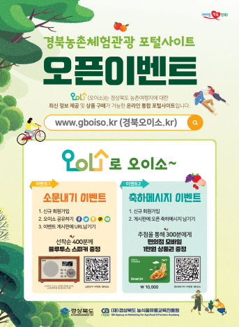 경북도, 농촌체험관광 포털사이트‘오이소’신규 오픈