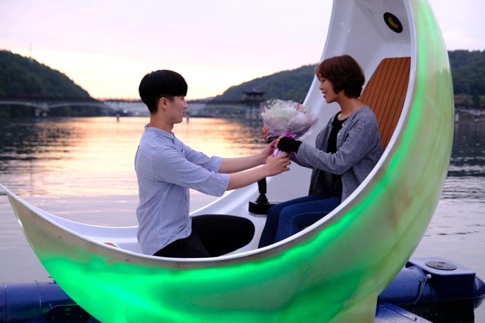 문보트는 IoT 기술이 접목된 초승달 모양의 전동 레저 보트로, 선체에 LED 조명이 탑재돼 있고 조이스틱을 통해 전후좌우, 360도 회전 등 누구나 쉽게 조종이 가능하다.문보트는 마치 물위에 형형색색의 초승달이 노니는 듯한 풍광을 자아내며 젊은 층으로부터 인기를 끌고 있다.