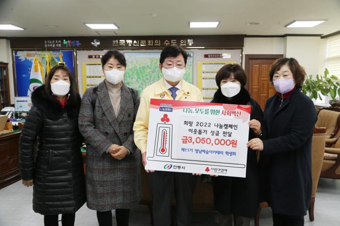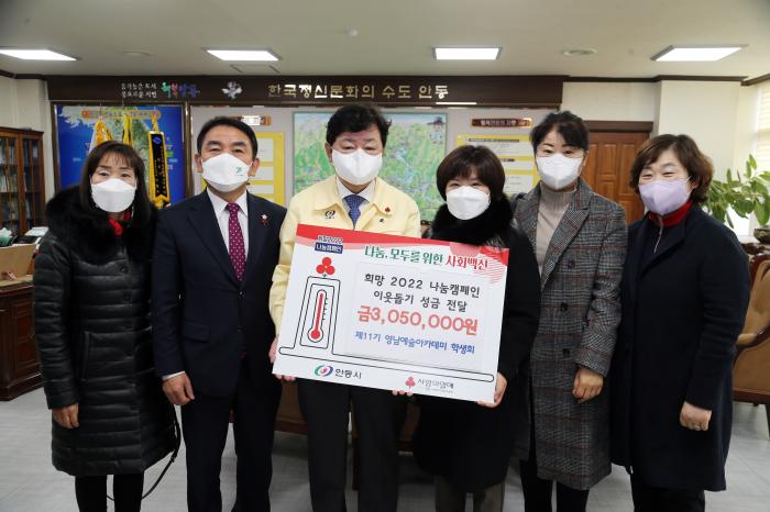 영남예술아카데미 제11기 학생회는 12월 9일 안동시를 방문해 어려운 이웃을 위한 ‘희망2022 나눔캠페인’ 이웃돕기 성금 3,050,000원을 전달했다.
