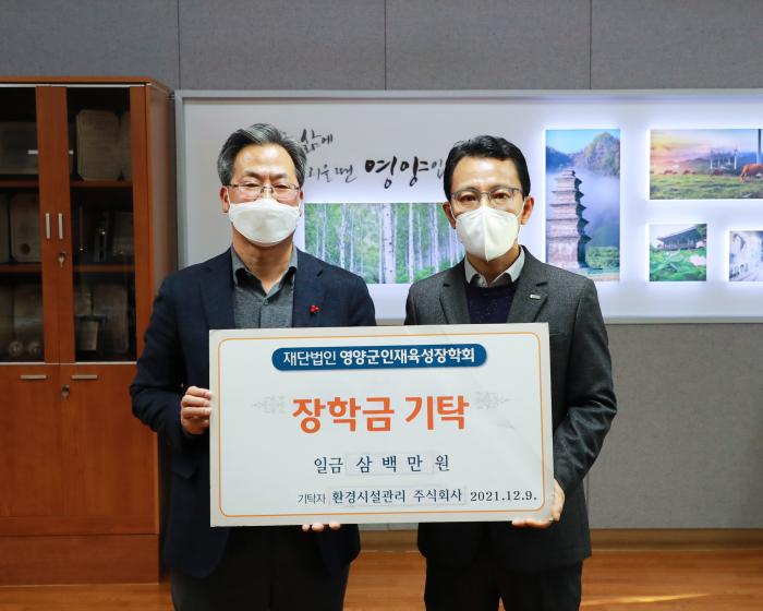 환경시설관리 주식회사(대표 김원기)는 12월 9일 영양군 인재육성장학회를 찾아 장학금 3백만 원을 전달했다.