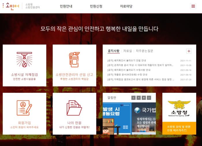 2016년 7월부터 운영 중인 소민터는 ▲소방시설등 자체점검(종합정밀점검, 작동기능점검) ▲소방안전관리(보조)자 선임신고 및 선임 연기신청 ▲소방안전에 관한 Q&A 등 민원인에게 온라인으로 다양한 서비스를 제공하고 있는 시스템이다.