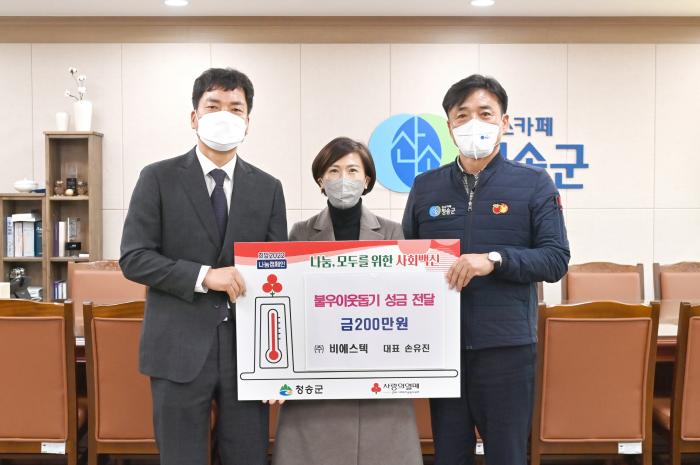 ㈜비에스텍(대표 손유진)에서 지난 12월 13일 이웃돕기 성금 2백만원을 청송군에 기부했다.