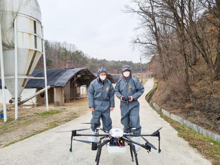 농한기라 미사용 중인 마을소유의 드론을 활용하여 15일 오후 가금사육농장뿐만 아니라 방역차량 출입이 힘든 저수지 및 하천 제방 근처를 소독할 계획이다.
