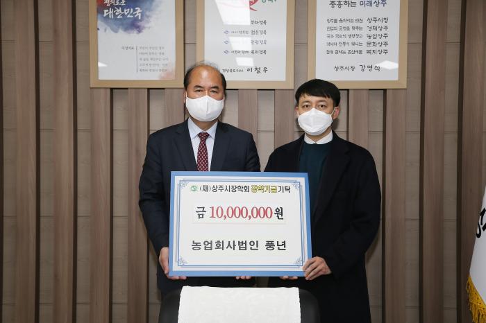 지난 13일, 외답농공단지에 위치한 농업회사법인 풍년(대표 박철홍)은 장학금 1,000만원을, 14일에는 경북자동차전문정비사업조합 상주지회(지회장 최금배)가 장학금 200만원을 기탁했다.