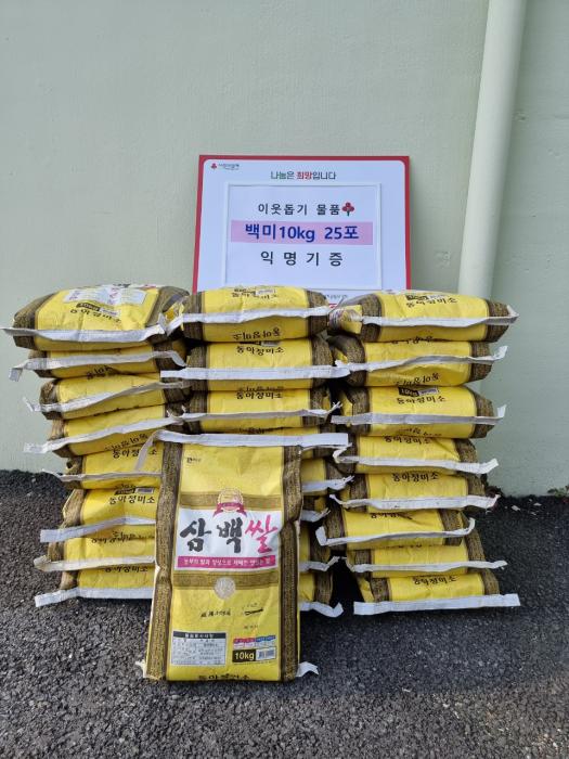 이 기부자는 끝끝내 이름을 밝히기를 거부하며 청사에 쌀을 전달하고 사라졌다. 기부된 쌀은 관내 수급자와 독거노인, 저소득 한부모 가정 등에 ‘얼굴 없는 천사’의 마음을 담아 전달 예정이다.