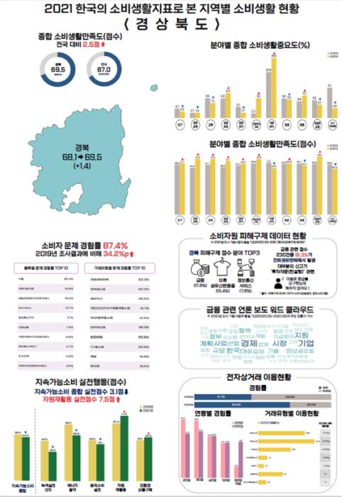 경상북도는 2021 한국의 소비생활지표 조사 결과, 도 단위에서 최고 점수를 획득했다.