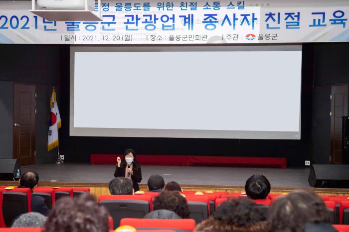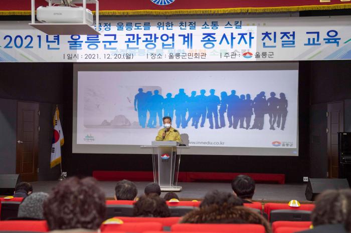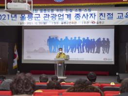 울릉군은 12월 20일 관내 관광관련 업계 대표 및 종사자 등을 대상으로 사계절 울릉 관광을 위한 첫 발걸음으로 '관광업계 종사자 친절교육'을 실시했다.