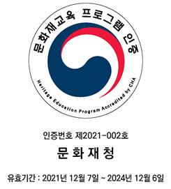 문화재청과 한국문화재재단이 실시한 ‘2021 문화재교육 프로그램 인증제’심의에서 지난 12월 7일 안동문화지킴이(대표 김호태)의 「꼭 알아야 할 안동의 문화유산교육」이 선정되었다.