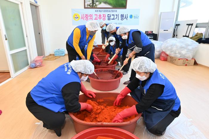 “사랑의 고추장 담그기”는 바르게살기운동 청송군협의회에서 매년 실시하고 있는 행사로, 이날 회원들은 직접 고춧가루와 메줏가루, 찹쌀가루, 소금 등 각종 재료를 준비하여 고추장 410Kg을 담가 지역 내 어려운 형편에 있는 230여 소외계층을 대상으로 읍·면사무소를 통해 전달할 예정이다.