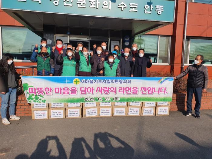 안동시 일직면새마을지도자협의회는 23일(목) 10시30분 일직면행정복지센터 전정에서 연말연시를 맞이하여 따뜻한 이웃사랑을 실천하고자 어려운 이웃 36세대에 라면 36박스를 배달하는 '사랑의 라면 나눔 행사'를 가졌다.