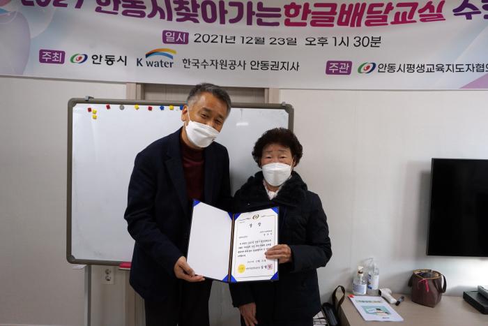 또한, 안동시 한글배달교실 사업이 지난 15일 개최된 ‘제1회 경상북도 평생학습대상’ 시상식에서 사업부문 최우수상을 수상하기도 하였다. 현재 문해시화전 출품작들에 대한 전시회가 안동역에서 진행 중이며 내년 1월까지 안동시청 웅부관 1층 로비에서 이어질 예정이다.