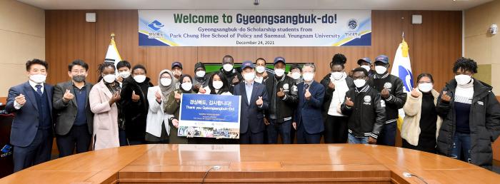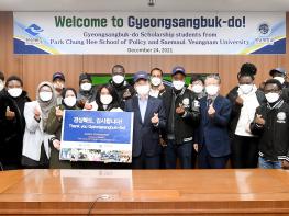 영남대 박정희새마을대학원 외국인 유학생 20명이 24일 도청을 찾아 이철우 도지사를 예방하고 경북도의 지원으로 새마을운동을 공부할 수 있도록 해주신데 대해 감사 인사와 영상을 전달했다.