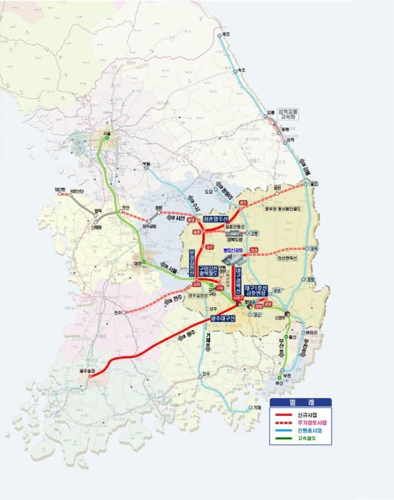 일반철도 사업으로 광주대구선, 전주김천선 역시 12월에 사전타당성조사를 착수했다.