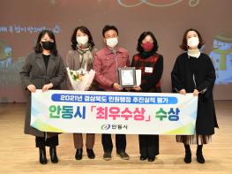 안동시는 경상북도가 주관하는 ‘2021년 민원행정 추진실적 평가’에서 23개 시·군 중 최우수상을 수상하는 영예를 안았다.