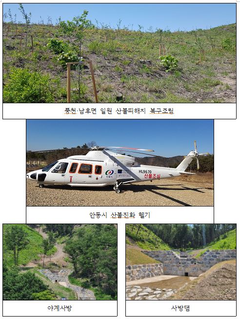 금년 시는 풍천·남후 산불피해지 고사목제거사업 1,177ha, 산불피해지 복구조림사업 424ha, 사방댐·야계사방 등 산림재해예방시설 10개소 설치, 소나무재선충병 방제, 산불예방 및 초등진화를 위한 중형헬기 1대 자체운영, 관내 독림가 ·임업후계자 등 임업인 소득향상을 위한 산림소득사업 추진 등 다양한 시책사업을 발굴하여 추진해 왔다.