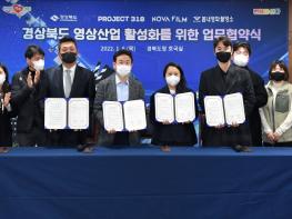 경상북도는 6일 오후 도청에서 프로젝트318(대표 신연주), 노바필름(대표 최원기), 봄내영화촬영소(대표 문루도)와 ‘경북 영상산업 활성화를 위한 업무협약’을 체결했다.