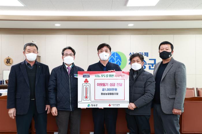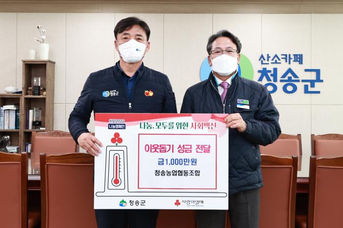 청송농업협동조합은 지난 7일 이웃돕기 성금으로 청송군에 1,000만원을 전달하며 ‘희망 2022 나눔캠페인’에 동참했다.