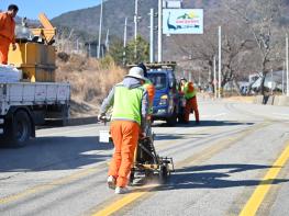 청송군은 설을 맞아 고향을 찾는 귀성차량 증가에 대비하고 관광객의 안전한 차량운행과 쾌적한 미관조성을 위해 지난 1월 10일부터 오는 21일까지 ‘설맞이 도로정비’를 실시한다.