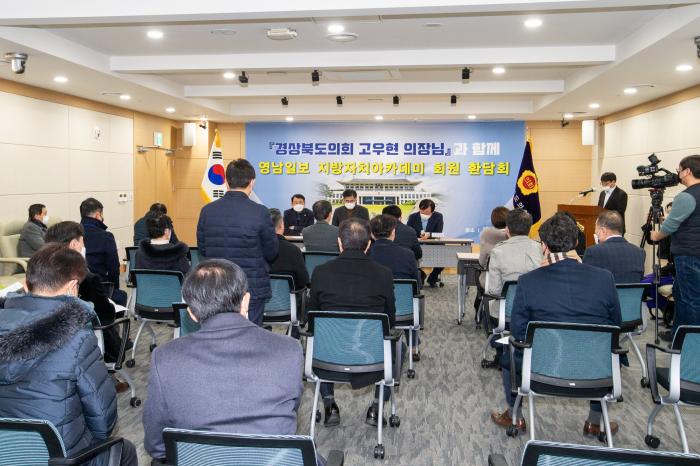 고우현 경상북도의회 의장은 1월 13일(목) 경상북도의회 세미나실에서 대구경북 정치 지망생인 영남일보 제2기 지방자치아카데미 회원 30여명과 도기욱 부의장, 안희영 운영위원장 등이 참석한 가운데 도의원 16년의 정치생활 Know-How를 후배 정치 지망생에게 아낌없이 전수하는 환담회를 개최했다.