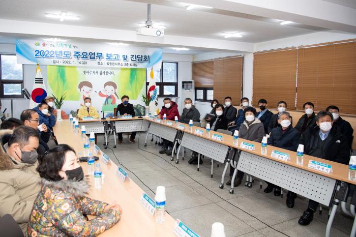 이번 방문에서 코로나19 방역수칙을 고려하여 김병수 울릉군수를 비롯해 각 마을 대표자 읍‧면장, 부서장 등 49명 이하로 최소한의 인원들만 참석한 가운데, 주민들의 생활편의와 관련된 2022년도 읍·면별 주요 현안사항 및 업무추진계획을 보고받았다.