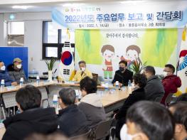 이후 참석한 마을대표들로부터 마을주민들의 불편상황과 개선방향을 청취하고 군정발전 방향을 논의하는 주민간담회를 실시하여 군과 주민 간 격식 없이 의견을 교환하는 허심탄회한 소통의 장을 형성했다.
