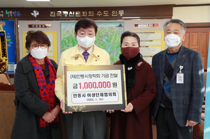 안동시 여성단체협의회(회장 류경희)에서 1월 18일 1백만 원의 장학금을 전달했다.