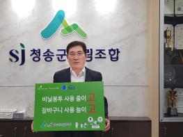(청송군=경북온뉴스) 청송군 = 청송군산림조합 신광희 조합장이 3월12일 직원들과 함께 탈플라스틱 실천릴레이 운동 “고!고!챌린지” 캠페인에 동참했다.