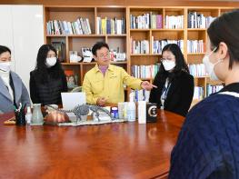 이철우 지사는 지난 21일 도지사실에서 올해 공직에 첫 발을 내딛은 새내기 공무원 10여명과 면담 시간을 가졌다. 이날 이 지사는 신규 공무원들과 자리에서 “앞으로 도청은 여러분이 끌고 가야한다. 내가 주인이라는 생각으로 즐겁고 창의적인 생각으로 일해 달라”라고 당부했다.(업무부서/대변인실)