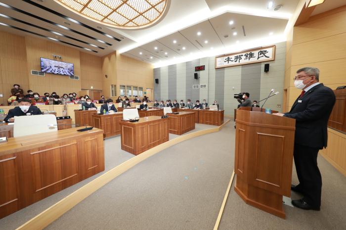 김학동 군수는 “신도시 정주 여건 개선과 원도심 공동화 현상 극복, 일자리 창출과 부자 농촌 만들기에 주력을 다 할 것이며 맞춤형 복지 실현, 관광 인프라를 통한 체류형 관광 유도 등 군민의 복리증진과 지역발전을 위해 열심히 할 수 있도록 의회의 많은 협조와 성원을 당부드린다”고 말했다.