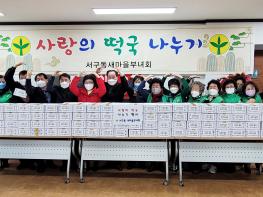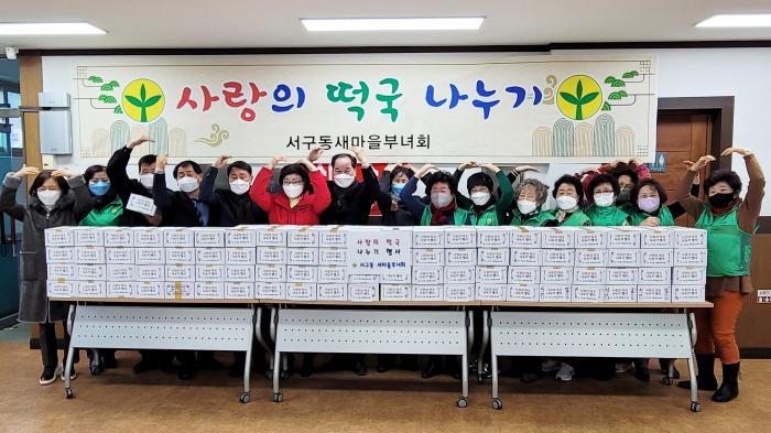 서구동 새마을부녀회는 독거노인 등 관내 어려운 이웃 160가구에게 160만 원 상당의 떡국 떡 200kg와 계란 10판을 직접 전달하여 민족 최대의 명절 설을 앞두고 훈훈한 명절을 맞이하기 위하여 이웃 간의 온정을 나누었다.
