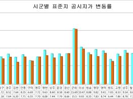 도내 표준지 공시지가 변동률은 평균 7.79% 상승해 지난해(8.44% 상승)변동률보다 0.65%P 낮은 것으로 나타났다.