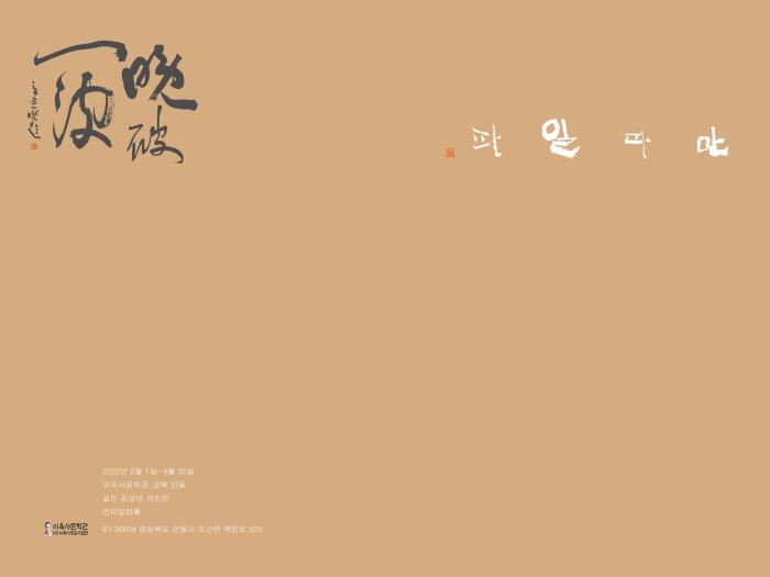 이육사문학관 갤러리에서는 2월 2일(수)부터 일만 김상년 작가 특별초대전인 <만파일파전(萬破一波展)>을 개최한다. 이번 전시는 김상년의 아호인 ‘일만一晩’의 뜻처럼 “글씨를 늦게 깨쳤지만(晩破), 한 바탕 파도를 일으킨다(一波 )”는 의미를 담았다.