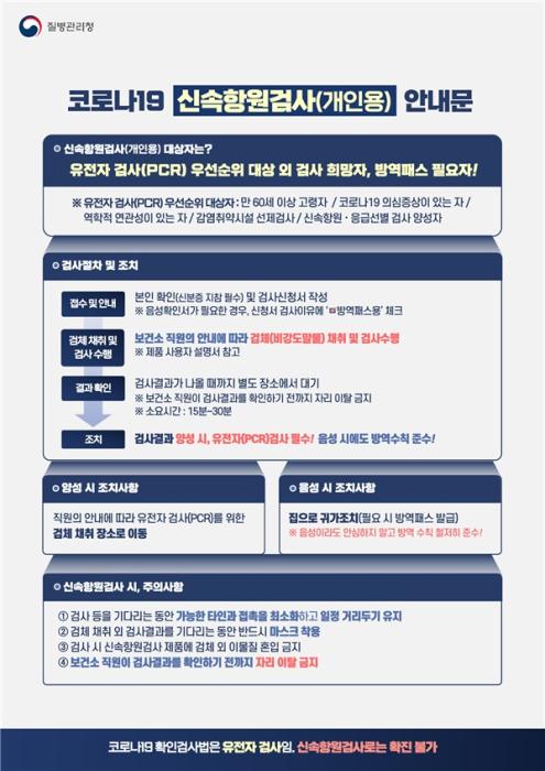 안동시 관계자는“최근 지역 내 확진자가 폭증하고 있어 기존의 PCR검사 운영방식이 한계에 봉착했다.”며 “추후 상황에 따라 드라이브 스루 등 다양한 방법도 강구하겠다.”고 전했다.(업무부서/코로나19TF팀 054-840-5380)