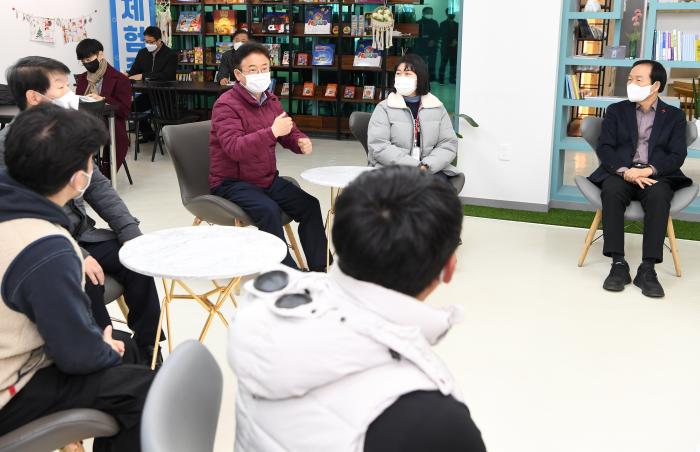 먼저, 지난해 문을 연 청년들의 복합문화 공간인 의성 청년 테마파크를 방문해 지역발전 잠재력을 높이기 위한 청년유입 정책 사업들을 확인했다.