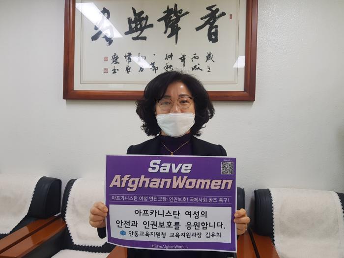 경상북도안동교육지원청(교육장 김동욱) 김유희교육지원과장은 2월 7일(월) 아프카니스탄 여성의 안전과 인권보호를 응원하는 SNS챌린지에 참여했다.