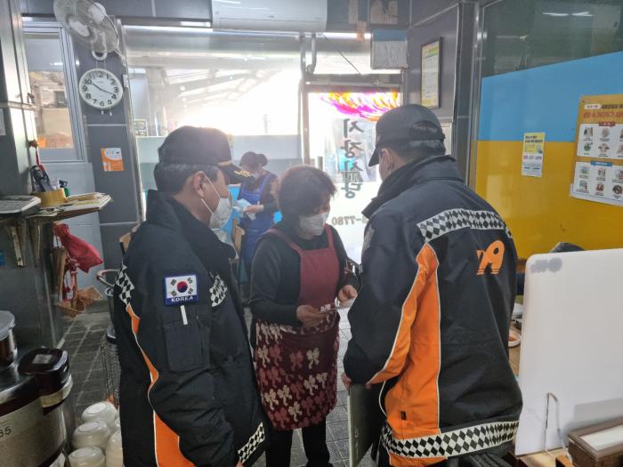 소방공무원, 의용소방대원, 시장 상인회 등 15명이 참가한 가운데 ▲겨울철 3대 전기제품 안전사용 매뉴얼 배부 ▲화목보일러 안전 사용 및 관리법 안내 ▲음식점 주방화재 예방을 위한 점검과 K급 소화기 비치, 후드 및 배기 덕트 청소 방법 안내 ▲주택 화재 예방을 위한 소화기 및 단독경보형감지기 설치 홍보 등을 추진했다.