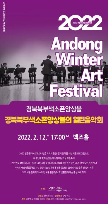 2022년 안동윈터아트페스티벌의 첫 번째 공연 ‘경북북부색소폰앙상블의 열린음악회’가 12일 오후 5시 안동문화예술의전당 백조홀에서 진행된다.