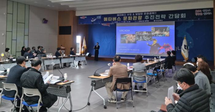 경상북도는 11일 도청 화백당에서 메타버스 문화관광 추진전략 간담회를 열어 문화관광체육부와 사업추진 방향을 공유하고 메타버스 문화관광 활성화를 위한 과제를 논의했다.