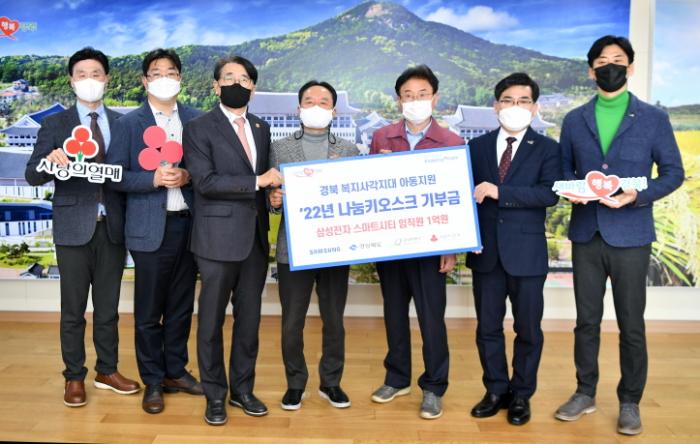 경상북도는 14일 도청에서 삼성전자 스마트시티 구미지원센터(센터장 김현도)가 지역 내 복지사각지대에 있는 아동·청소년을 지원하기 위해 1억 원을 기부했다고 밝혔다.
